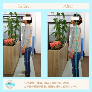 今日は、腰痛、肩コリ・背中のハリでお困りの40代男性のお写真を共有いたします。