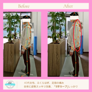 今日は、ふくらはぎ、足裏痛みでお困りの40代女性のお写真を共有いたします。