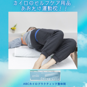 カイロプラクティックの「あおたけ枕(運動枕)」は、硬めの半円柱型枕を腰や背中、首の下において仰向けに寝て、身体を左右に揺らす運動やストレッチに使うのが基本です。